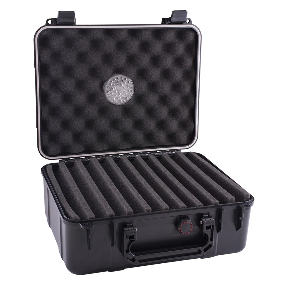 In comparison to the 5, 10, 15 Travel Humidors, the much larger versions will come with the 50ct Xikar Crystal Humidifier, so pair it with the Xikar Propylene Glycol Solution for refilling. On top of that, the larger versions come with a pressure relief valve.